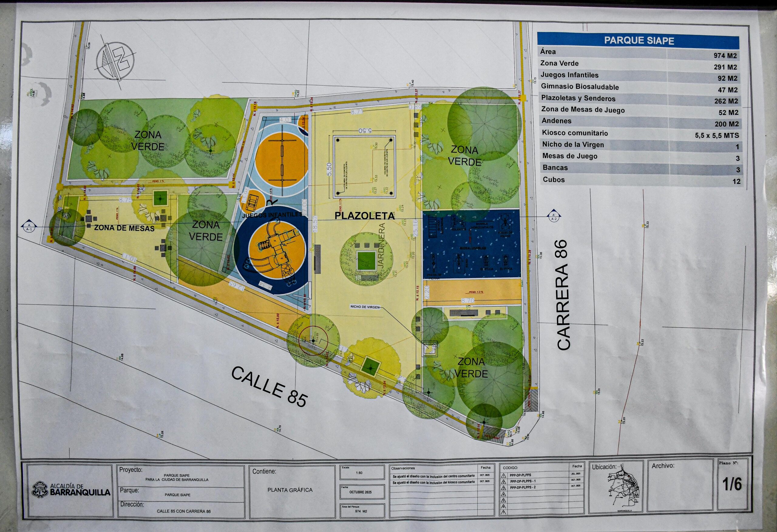 En detalle, este parque Siape se encuentra ubicado en la calle 85 con carrera 86 y se ejecuta en un espacio de 974 metros cuadrados, donde habrá zonas verdes, juegos infantiles, gimnasio biosaludable, plazoleta, senderos, zona de mesas, kiosco comunitario, mesas de juego, andenes. Todo para el goce y encuentro de la comunidad.